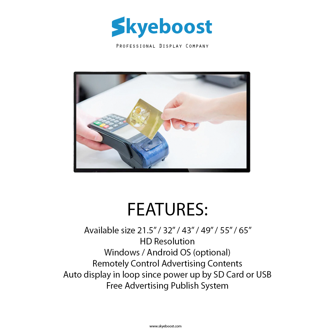 Perangkat ini menyertakan pemutar signage digital untuk dengan mudah mengirim konten media dari server ke tampilan signage digital apa pun melalui jaringan LAN atau Wi-Fi dan memberikan keandalan tinggi untuk beroperasi 24x7 dan menjadi solusi untuk Bank, Area Publik, Lobi, Pendidikan, Retails, dan Public Transit.